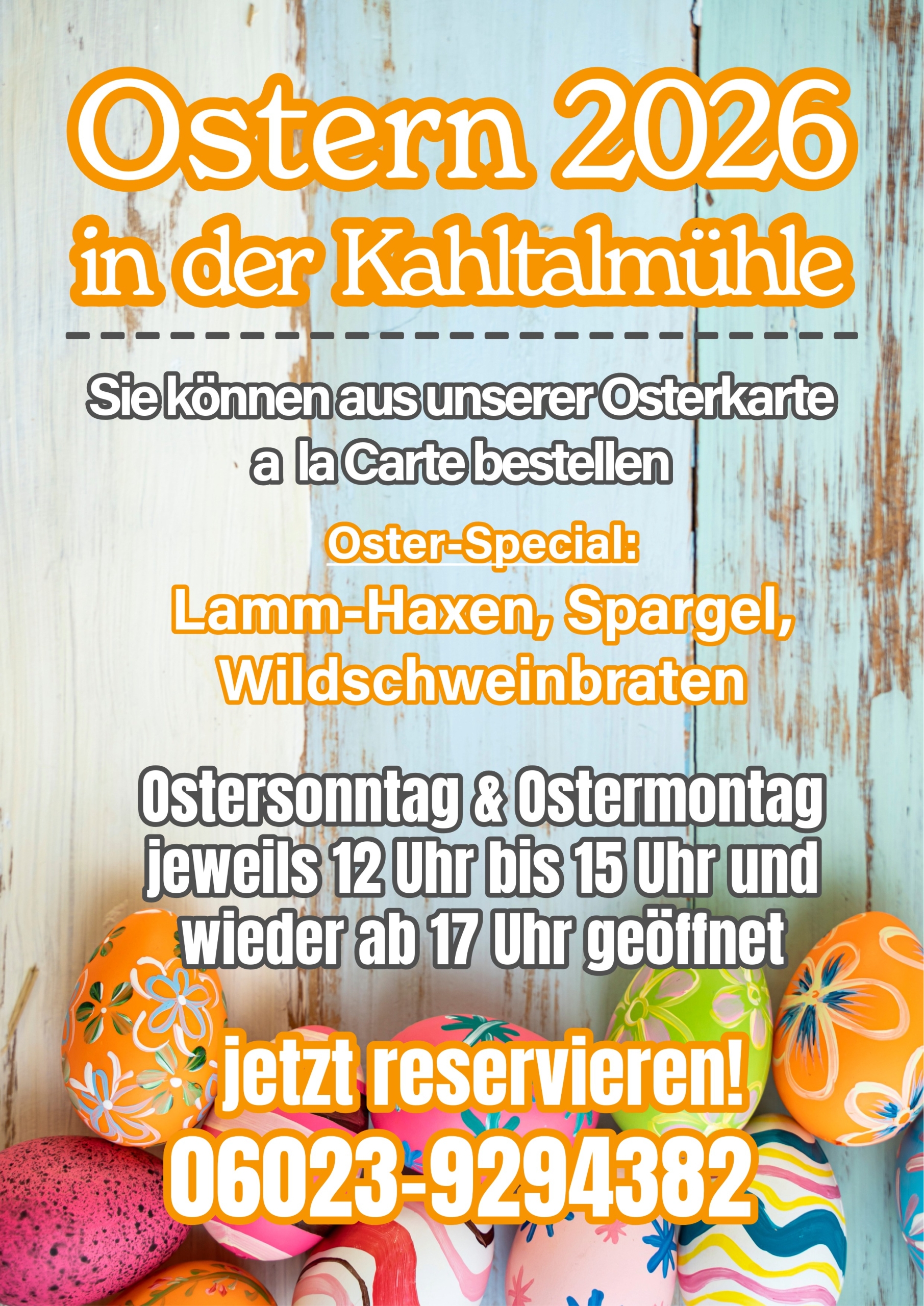 Bitte reservieren Sie telefonisch